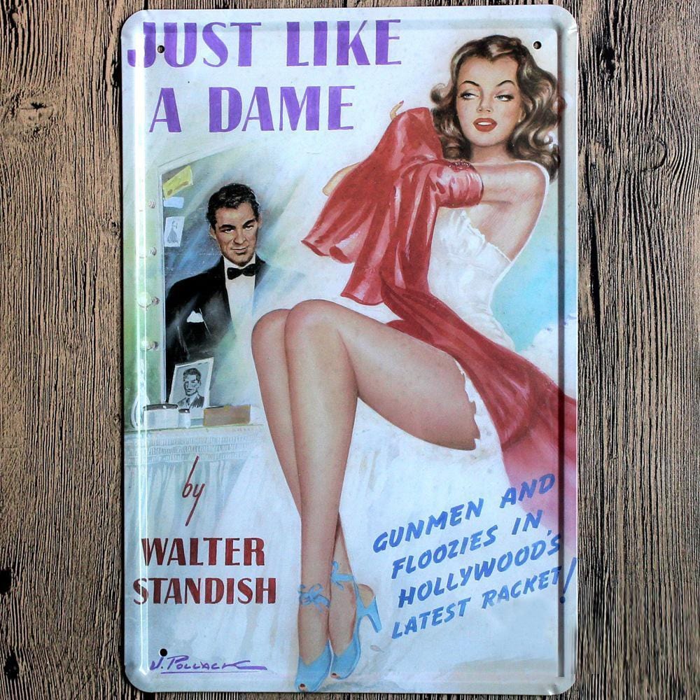 Just Like A Dame Metal Tin Sign Poster- Wall metal tin poster will adorn the look and feel of your room's wall. The wall poster has dimensions of 20 x 30 cm and can be stuck in any corner of your room and it will look just as great.