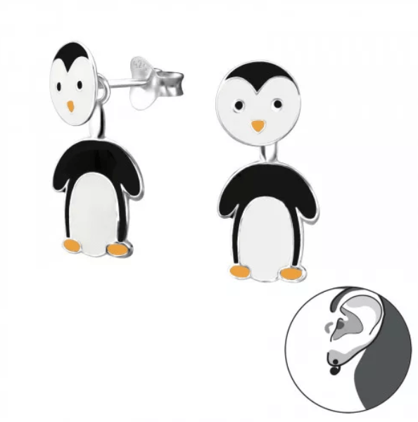 Kids Silver Penguin Jacket Stud Earrings