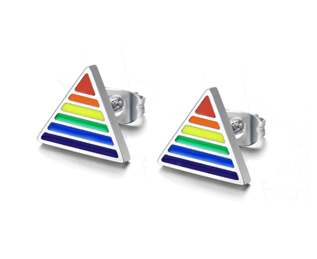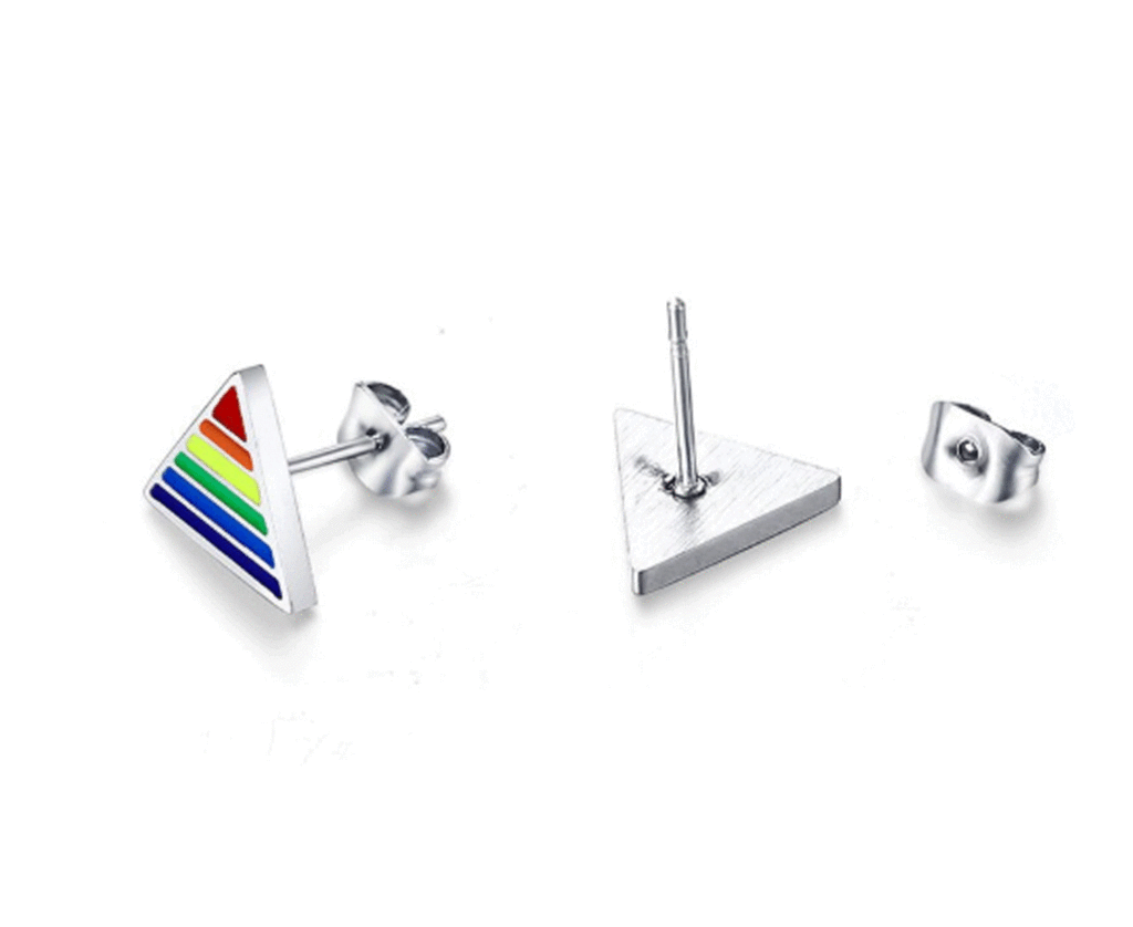LGBT Pride Stainless Steel Triangle Rainbow Stud Earrings for men and women. Measurements: 9mm x 10mm