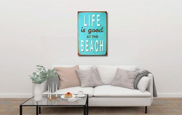 Life is Good at beach Metal Tin Sign Poster will adorn the look and feel of your room's wall. The wall poster has dimensions of 20 x 30 cm and can be stuck in any corner of your room and it will look just as great.