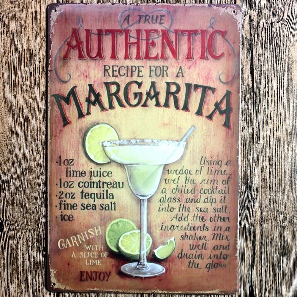 Margarita Recipe Metal Tin Sign Poster - Wall metal tin poster will adorn the look and feel of your wall. The wall poster has dimensions of 20 x 30 cm and can be stuck in any corner of your room and it will look just as great.