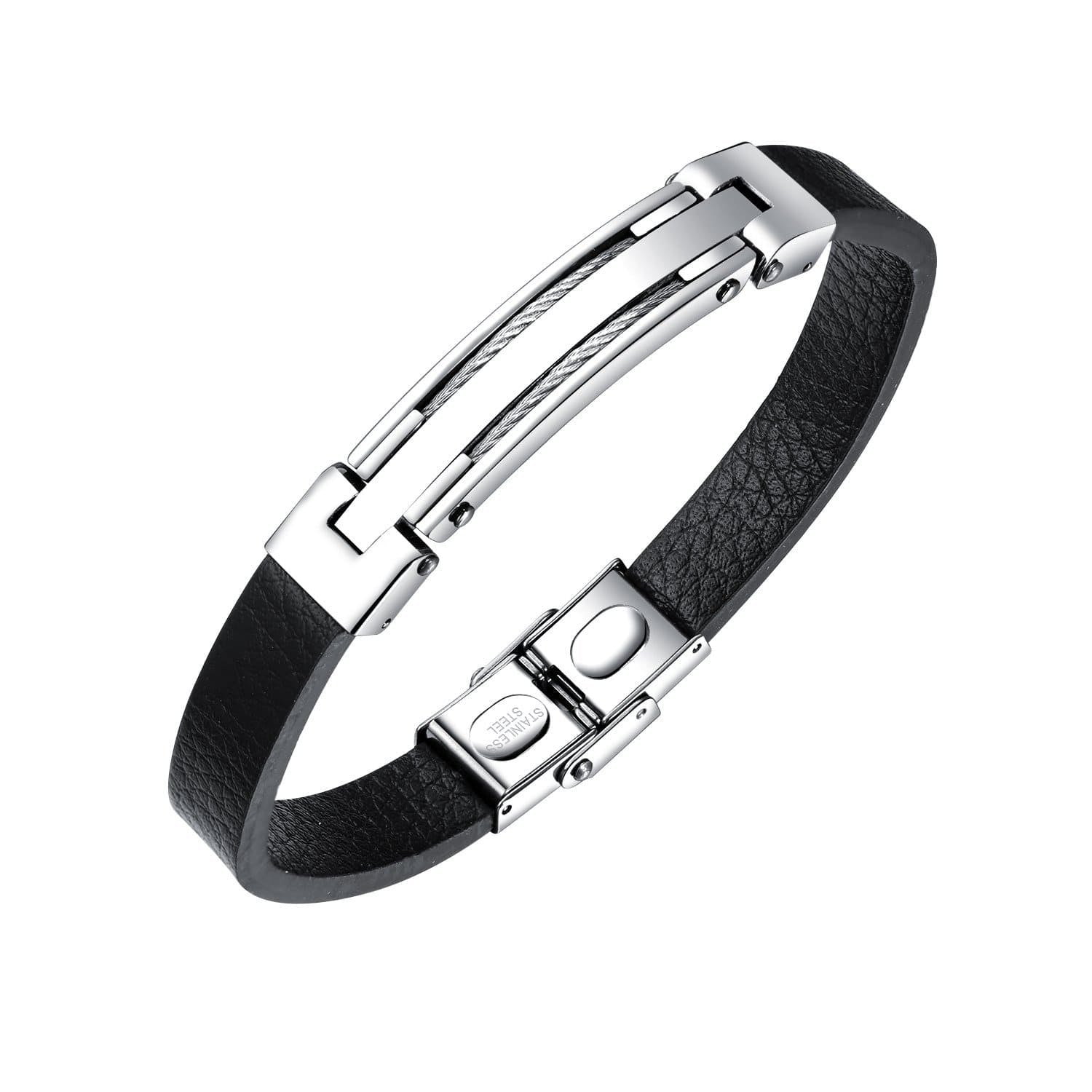 Men Steel & Leather Bracelet Comes with an elegantly designed and sturdy gift box that is ideal for storing and presenting jewellery.