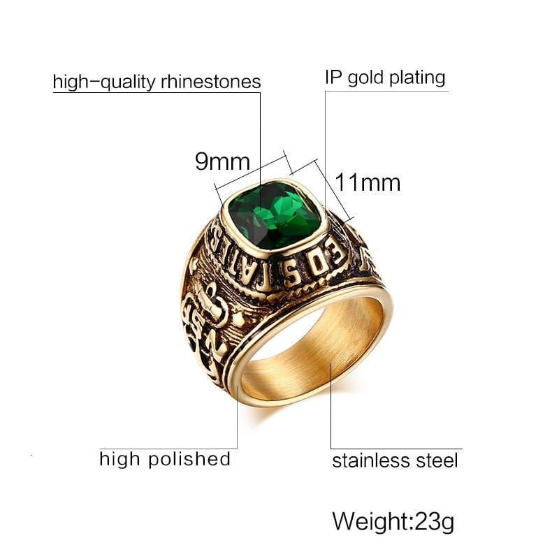 Mens Gold And Green Gemstone US Navy Style Ring