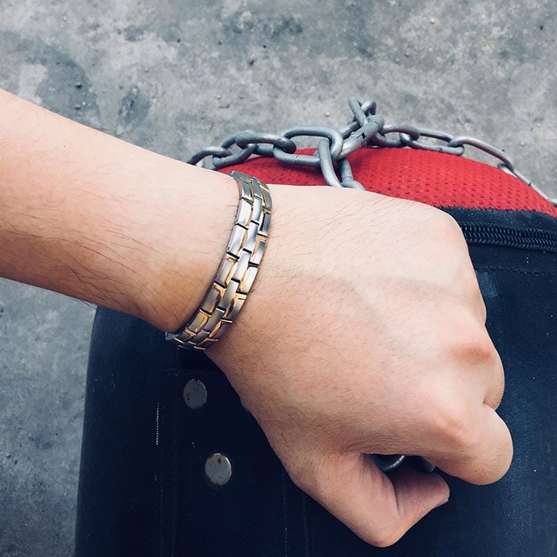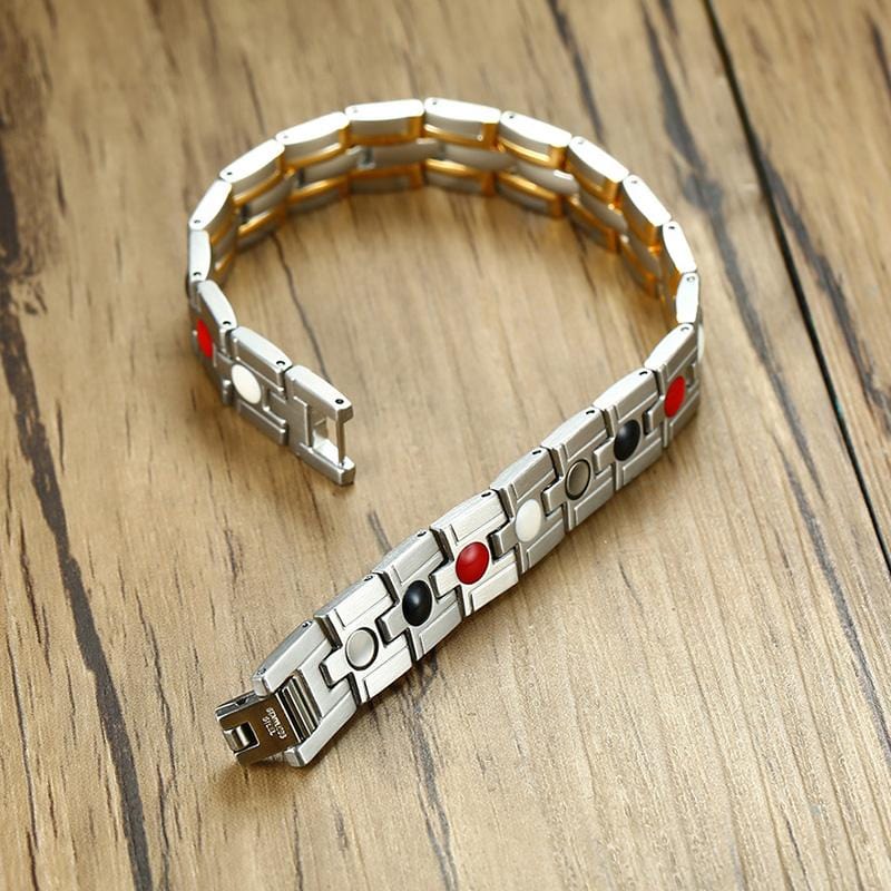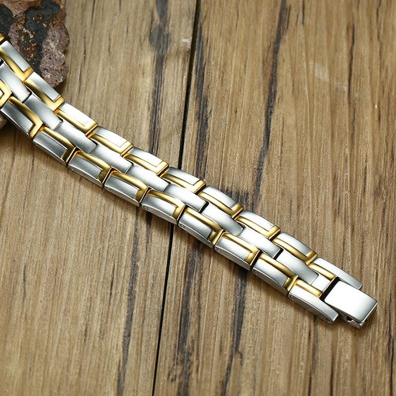 Mens Magnetic Bracelet Silver and Gold