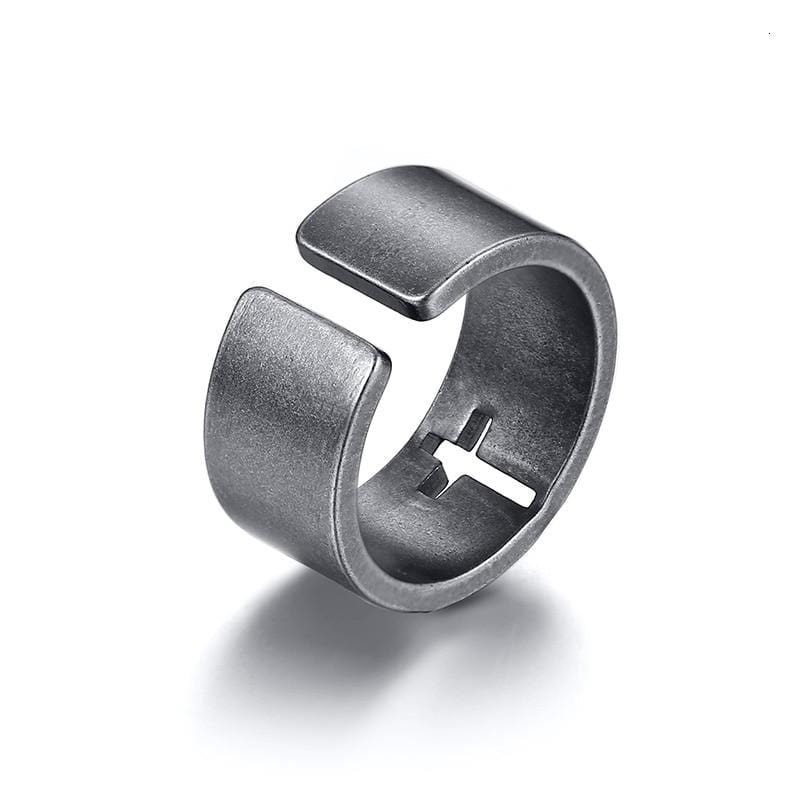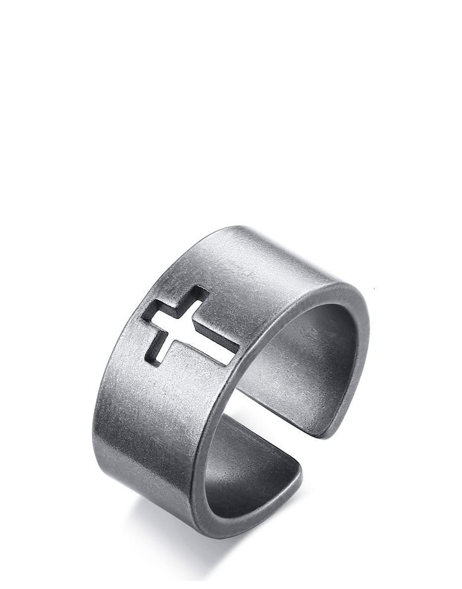Mens Stainless Steel Cut-Out Cross Ring