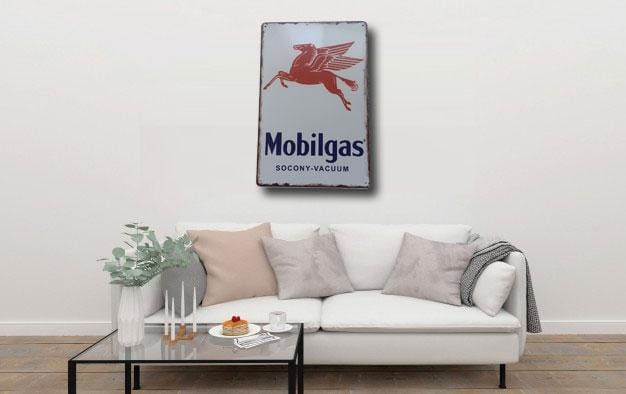 Mobilgas Tin Sign Poster - Wall Metal Tin Poster will adorn the look and feel of your wall. The wall poster has dimensions of 20 x 30 cm and can be stuck in any corner of your room and it will look just as great.
