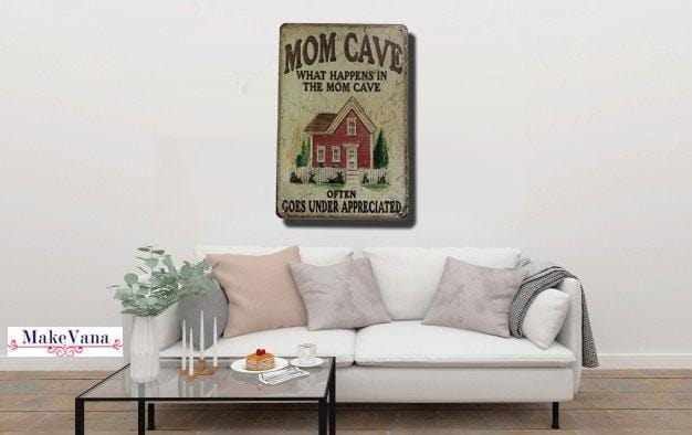 Mom Cave Sign Metal Poster - Wall Metal Tin Poster will adorn the look and feel of your wall. The wall poster has dimensions of 20 x 30 cm and can be stuck in any corner of your room and it will look just as great.