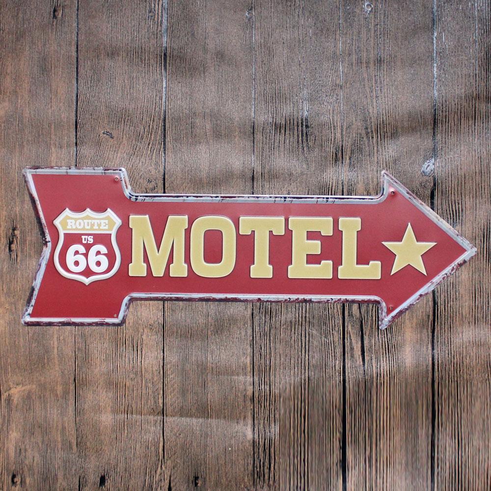 Motel Arrow Metal Tin Sign Poster will adorn the look and feel of your wall. This versatile and durable tin sign, metal wall poster can be stuck in any corner of your room, office, shop, shed, garage or store and it will look just as great. Imported Iron. Fashion & Retro Quality Tinned Skin. Four pre-drilled holes for hanging or you may use double-sided tape.