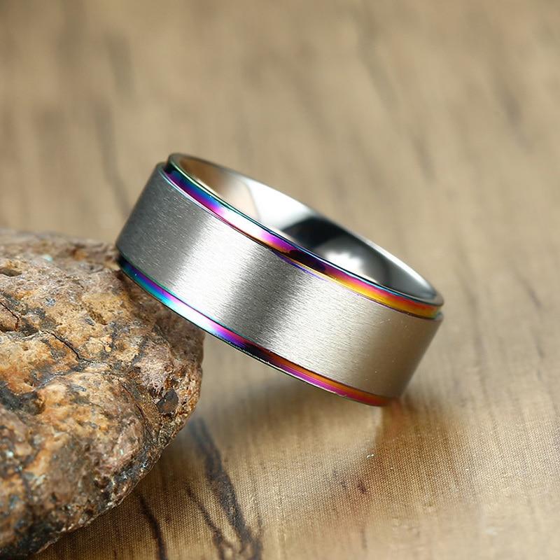Multi-Color Stainless Steel Wedding Band Ring