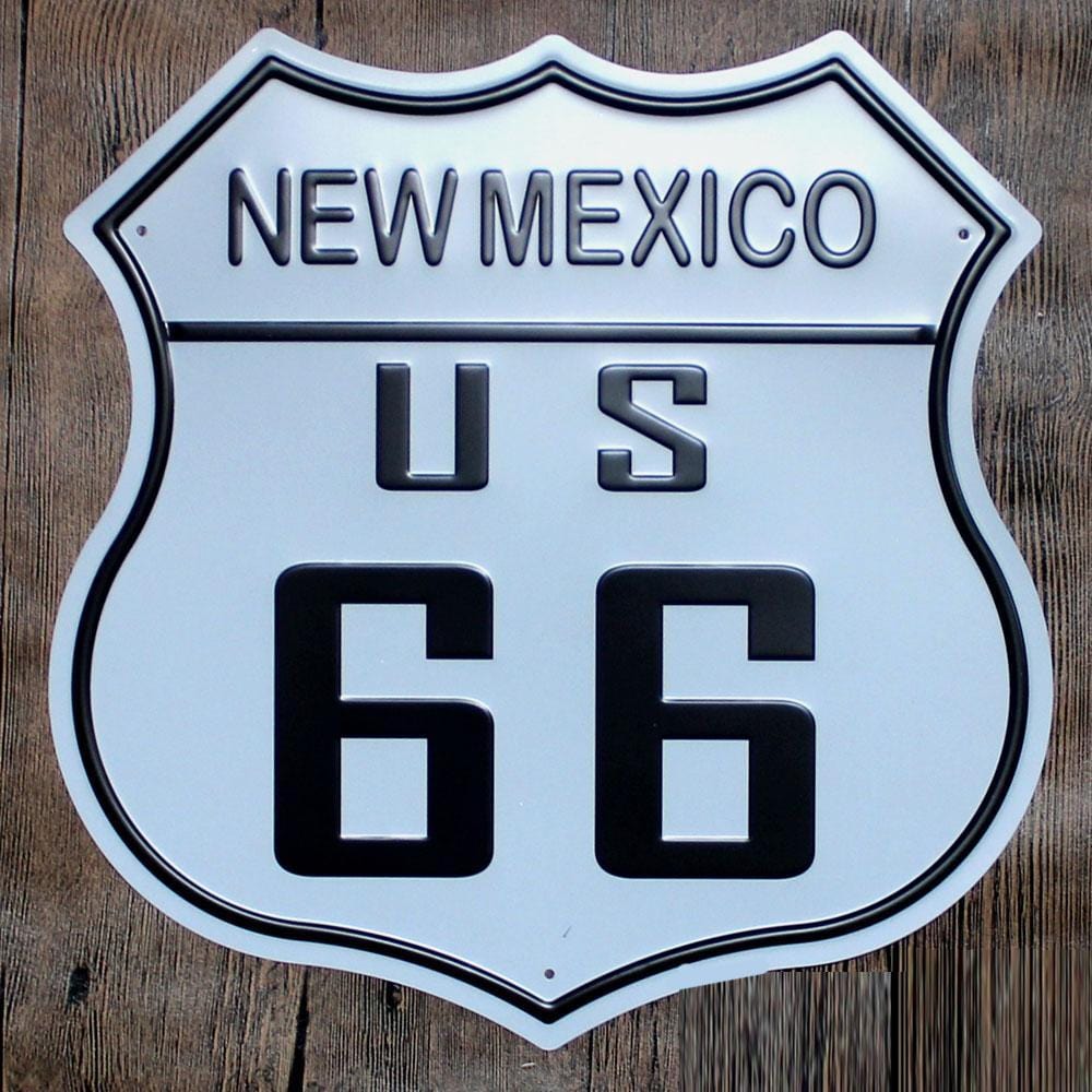 New Mexico US 66 Large Metal Tin Sign Poster will adorn the look and feel of your wall. This versatile and durable tin sign, metal wall poster can be stuck in any corner of your room, office, shop, shed, garage or store and it will look just as great. Imported Iron. Fashion & Retro Quality Tinned Skin. Four pre-drilled holes for hanging or you may use double-sided tape.