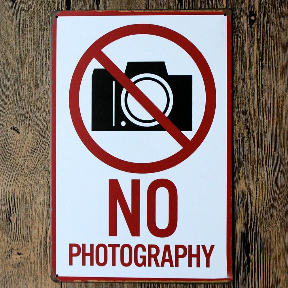 No Photogrpahy Allowed Sign Tin Poster - Wall metal tin poster will adorn the look and feel of your wall. The wall poster has dimensions of 20 x 30 cm and can be stuck in any corner of your room and it will look just as great.