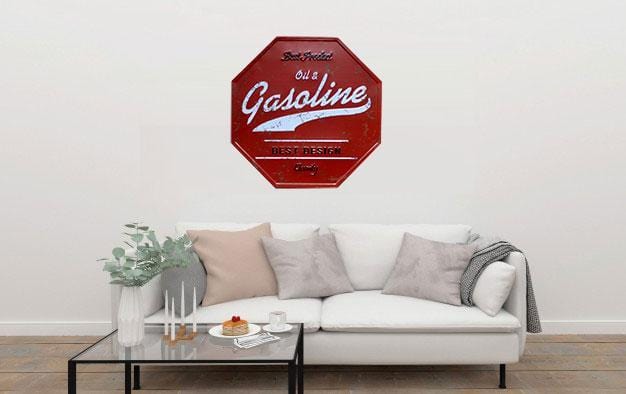 Oil & Gasoline Octagon Metal Tin Sign Poster will adorn the look and feel of your wall. This versatile and durable tin sign, metal wall poster can be stuck in any corner of your room, office, shop, shed, garage or store and it will look just as great. Imported Iron. Fashion & Retro Quality Tinned Skin. Four pre-drilled holes for hanging or you may use double-sided tape.