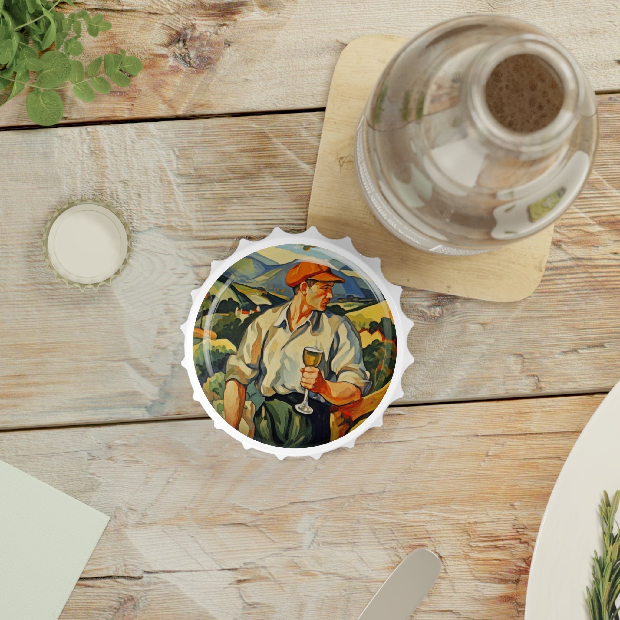The magnet inside makes sure the cap stays put after you open the bottle, making it easier and faster to throw it away. This is especially helpful for people who find regular bottle openers hard to use. Create a versatile decor item that can be used both as a fridge magnet and a bottle opener. Design Inspired by a portrait of the famous artist Paul Cezanne.