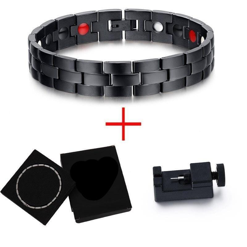 Pure Black Stainless Steel Mens Ionized Magnetic Link Bracelet