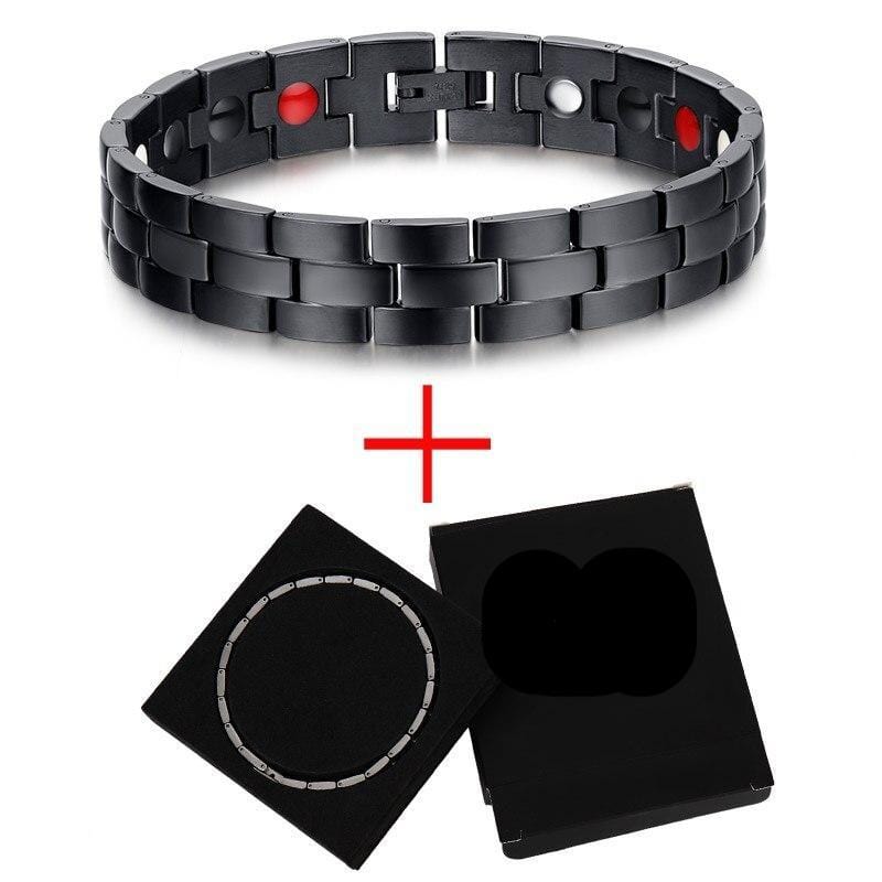 Pure Black Stainless Steel Mens Ionized Magnetic Link Bracelet