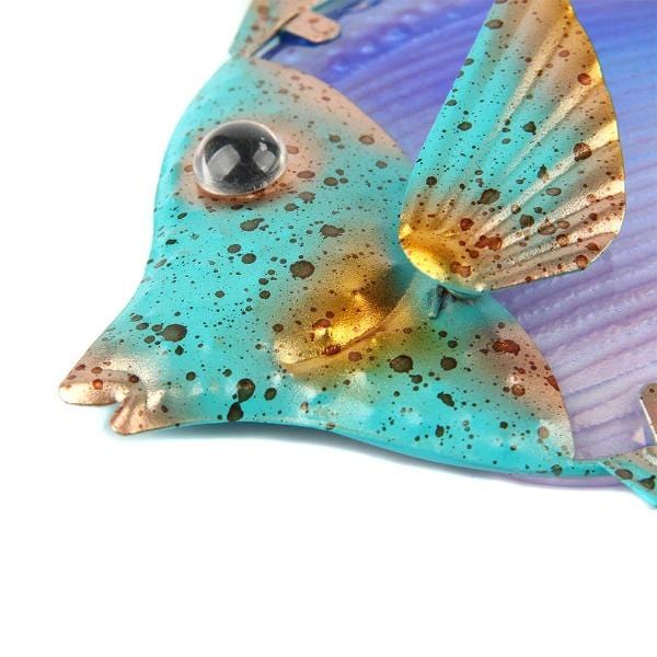 Give your home a modern update with a contemporary piece of metal art. Brightly coloured this gorgeous fish artwork is available in two striking colour schemes. In it's warmer shade the artwork features hues of red, orange and yellow, while the cool coloured variation features blue and green with gold accents. Both metal artwork variations are suitable for indoor and outdoor use.