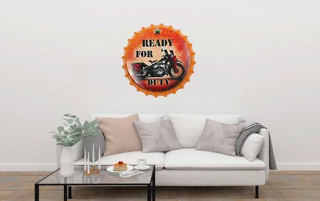 Ready For Duty Beer Cap Metal Tin Sign Poster will adorn the look and feel of your wall. This versatile and durable tin sign, metal wall poster can be stuck in any corner of your room, office, shop, shed, garage or store and it will look just as great. Imported Iron. Fashion & Retro Quality Tinned Skin. Four pre-drilled holes for hanging or you may use double-sided tape.