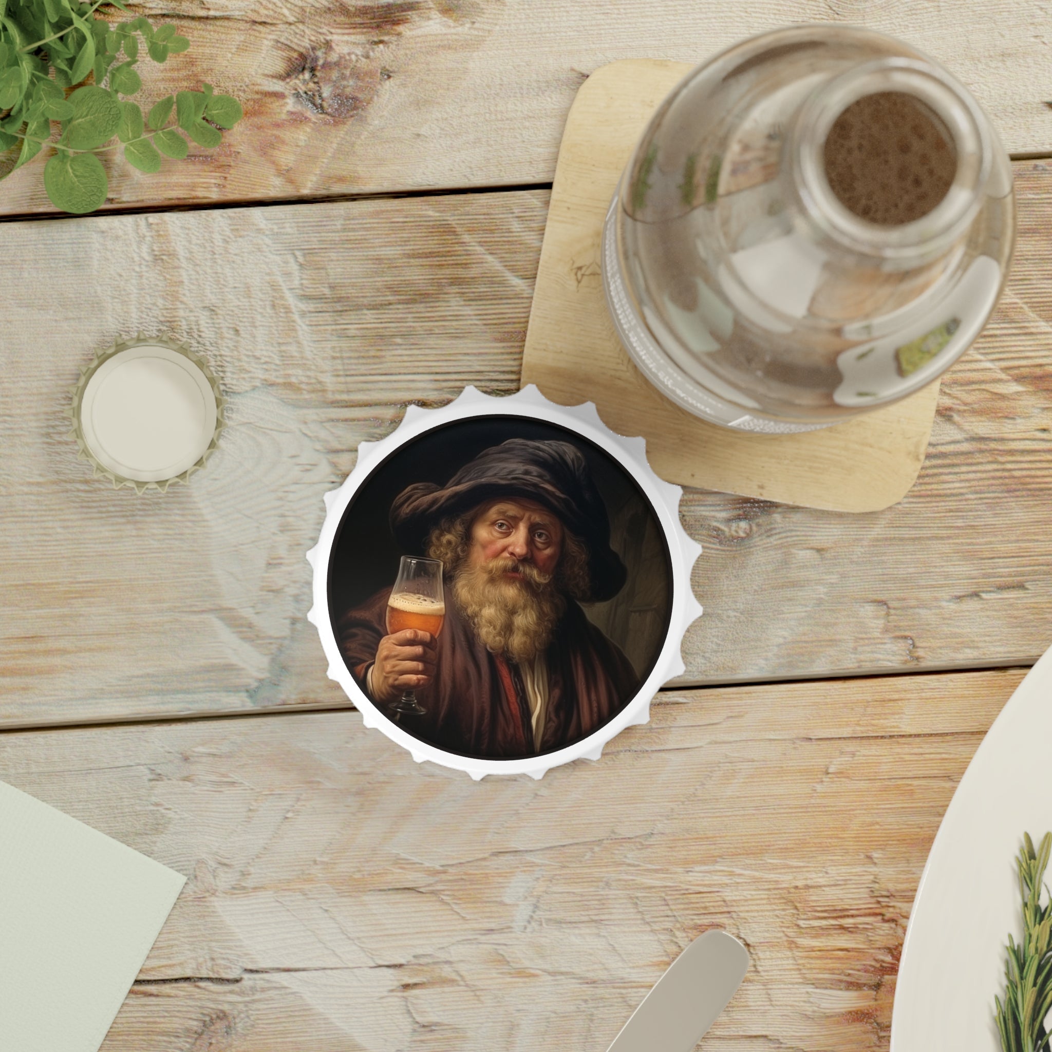 The magnet inside makes sure the cap stays put after you open the bottle, making it easier and faster to throw it away. This is especially helpful for people who find regular bottle openers hard to use. Create a versatile decor item that can be used both as a fridge magnet and a bottle opener. Design Inspired by a portrait of the famous artist Rembrandt.
