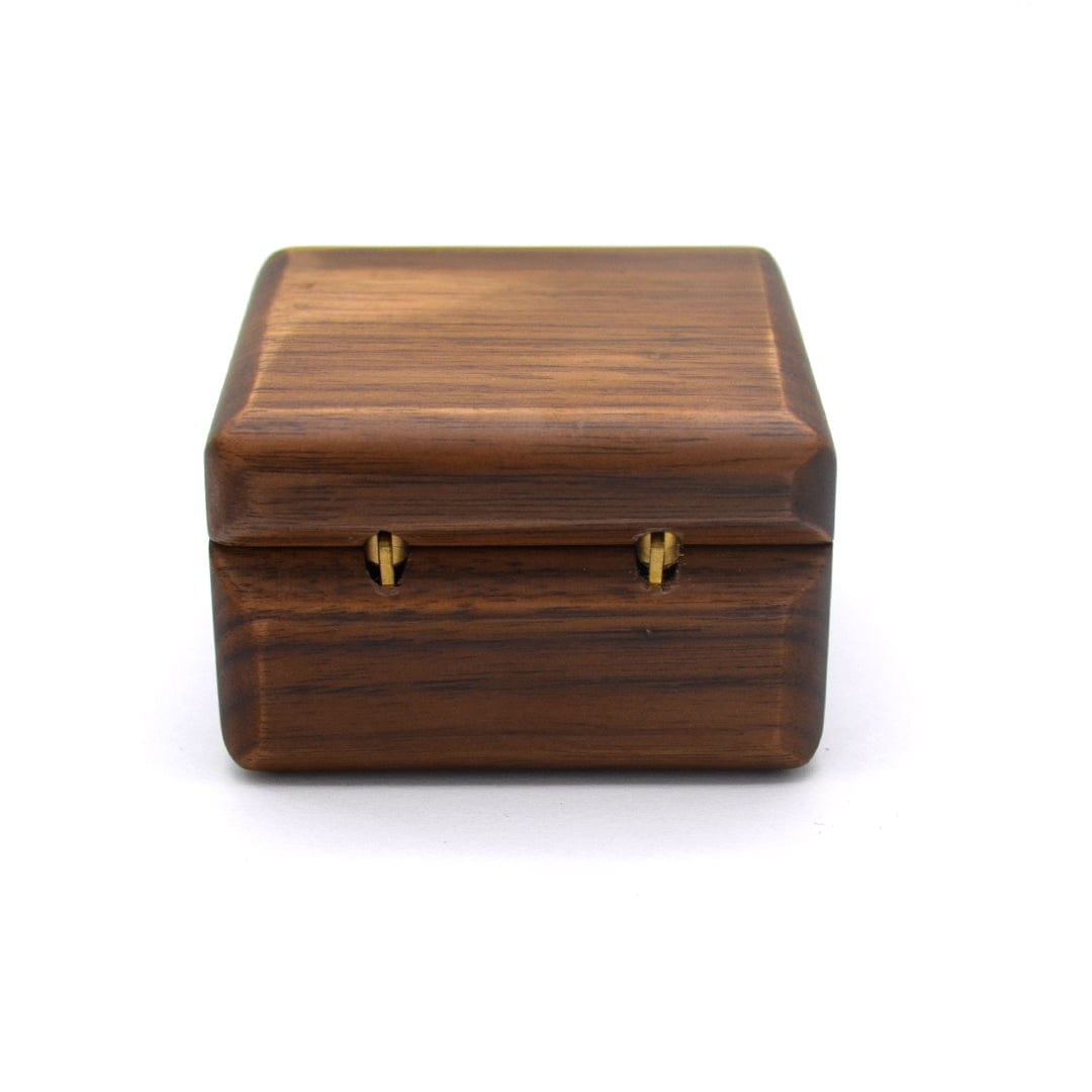 This handmade and hand-polished wooden ring bearer box will add the perfect unique touch to your wedding. Each piece is lovingly laser etched. The wooden wedding ring box fits in the palm of your hand.