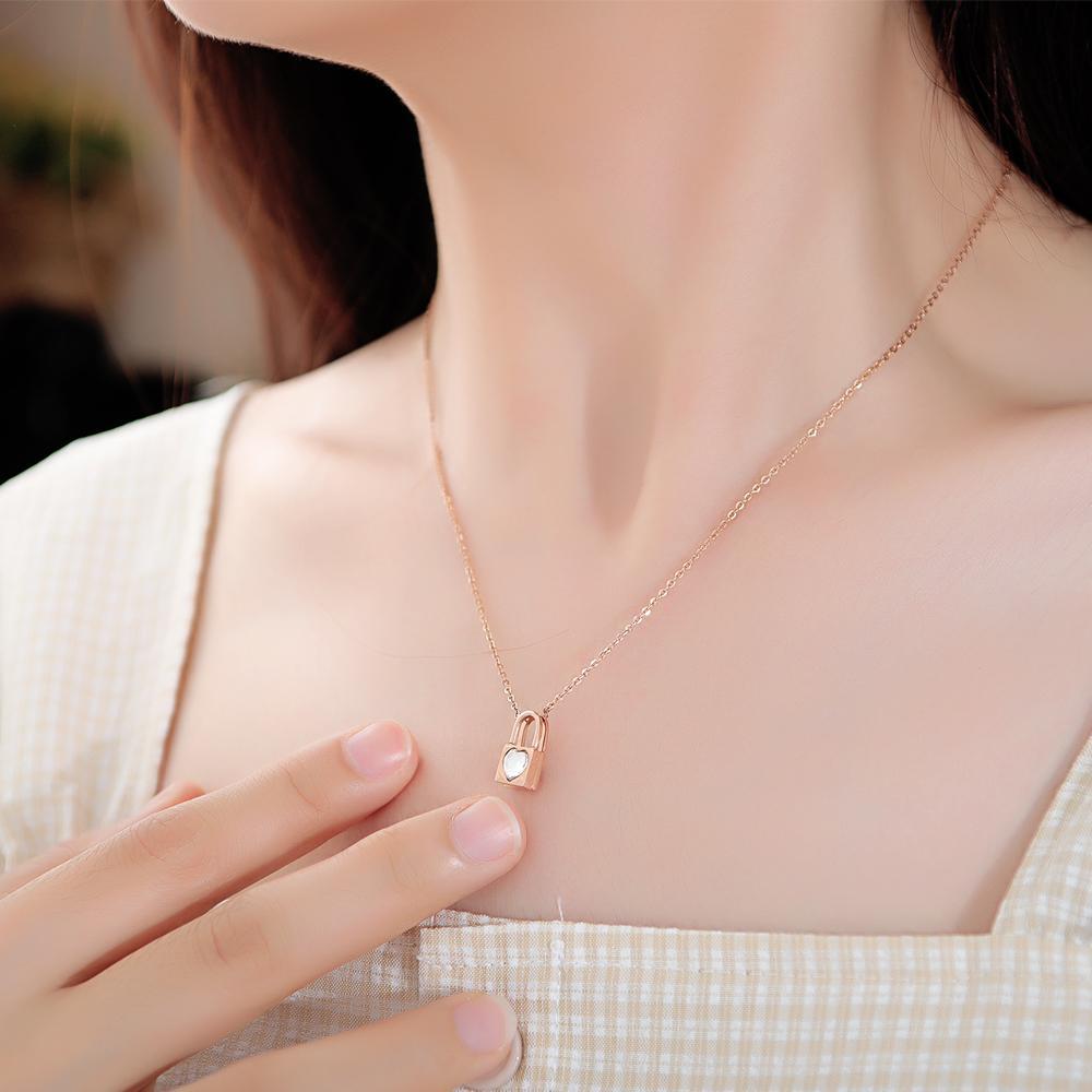 Rose Gold Heart Creative Rotating Lock Chain Necklace