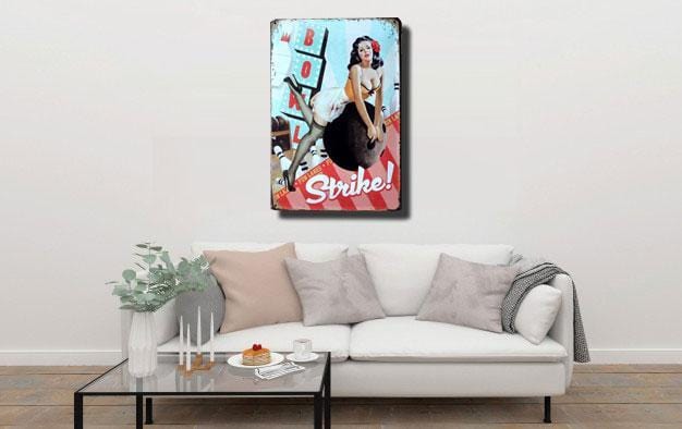 Sexy Girl Bowling Metal Tin Sign Poster - Wall metal tin poster will adorn the look and feel of your wall. The wall poster has dimensions of 20 x 30 cm and can be stuck in any corner of your room and it will look just as great.