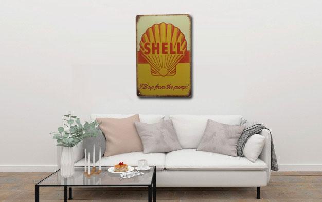 Shell Fill Up The Pump Vintage Metal Poster- Wall metal tin poster will adorn the look and feel of your room's wall. The wall poster has dimensions of 20 x 30 cm and can be stuck in any corner of your room and it will look just as great.