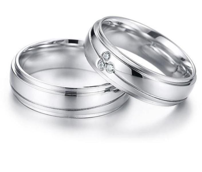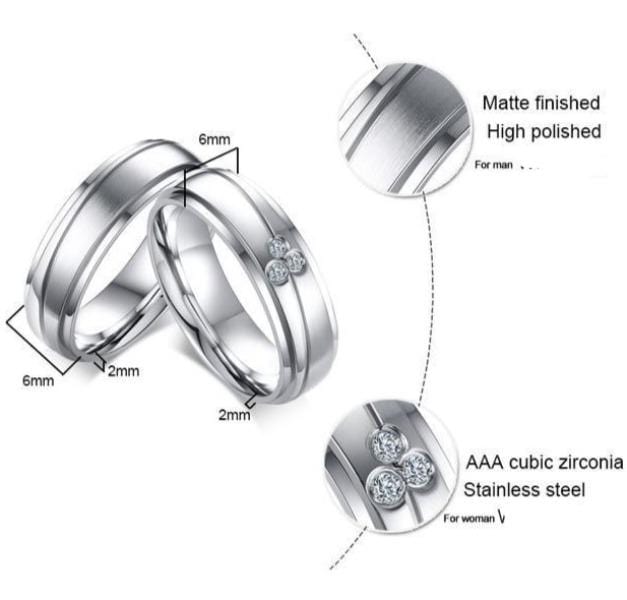 These stainless steel wedding bands add a delicate touch of up-to-date elegance to your look, being versatile and glamourous. The high polish finish is perfect for those moments when you want to shine and the intricate detailing and inlaid crystals give these rings a look that is unique as your special relationship.