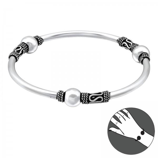 With a distinct rustic edge this gorgeous silver bali bracelet will instant take you to tropical shores and give that bohemian edge to your ensembles. The bracelet is crafted from high quality sterling silver and has an intricate design with the look of silver beading. The bracelet also features subtle oxidisation for a more vintage look.