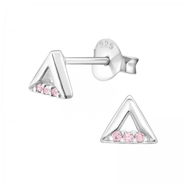 Silver Birthstone Triangle Stud Earrings