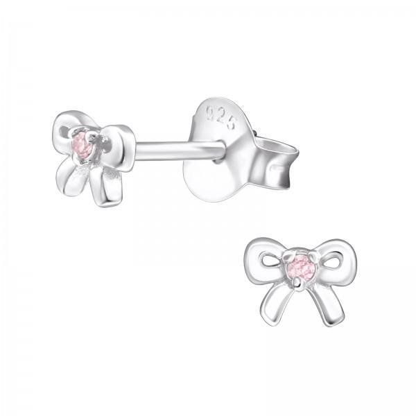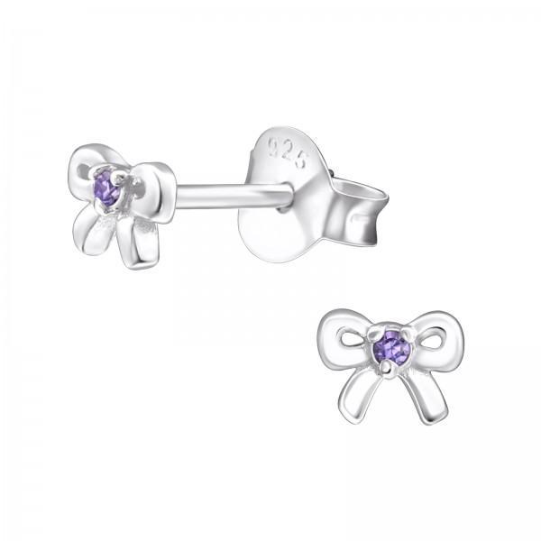 Silver Bow Birthstone Earrings