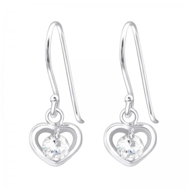 Silver CZ Crystal Heart Earrings