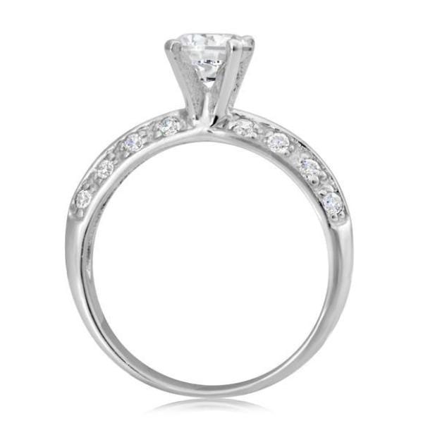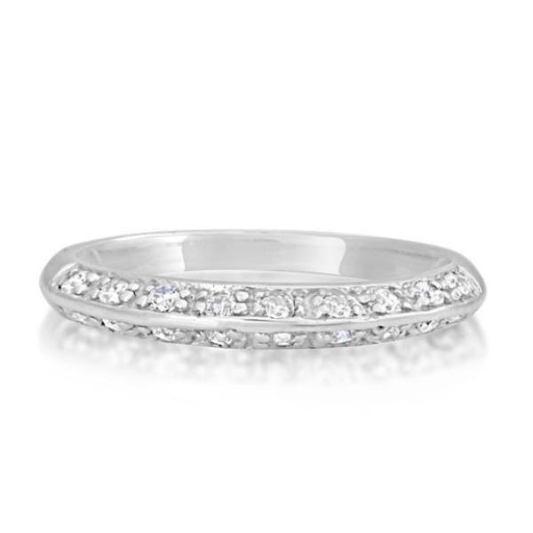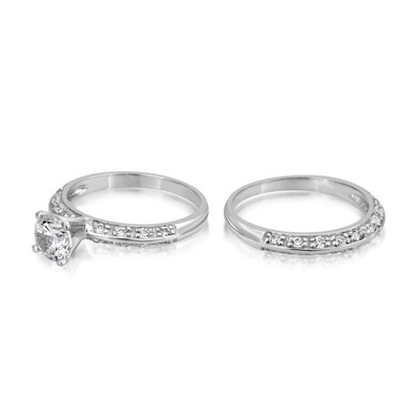 Modern and unique, this gorgeous engagement and wedding band set is sure to turn more than a few heads on your big day. Both wedding bands are crafted from sterling silver and features diamante detailing. They are also crafted in a knife edge design giving the jewellery even more depth and dimension.