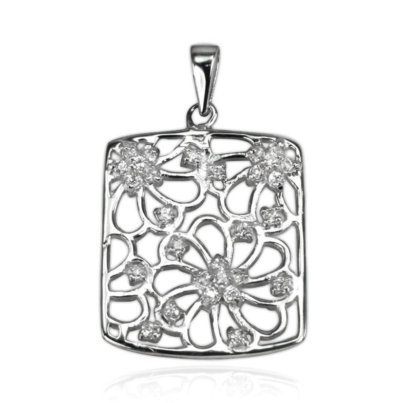 This unique pendant is a great way to spice up any casual outfit. The pendant is made from sterling silver and plated with rhodium. The rectangular pendant featured a daisy cutout design that is smattered with high-quality cubic zirconias; these add some sparkle to the piece. Because this pendant is made with sterling silver it is less likely to rust, tarnish or suffer from oxidisation.