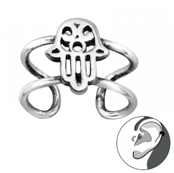 Silver Hamsa Ear Cuff is made of sterling silver. It is less likely to rust, tarnish or suffer from oxidisation.