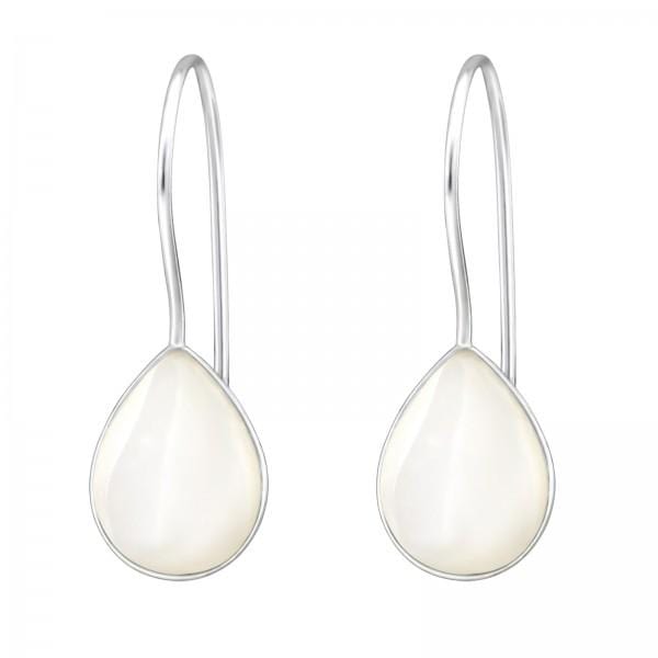 Silver Pear Stone Earrings