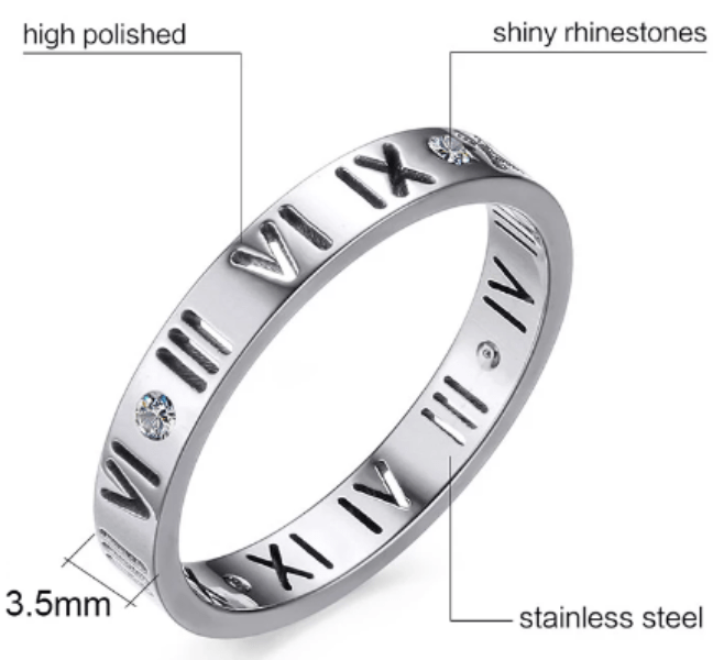 Silver Roman Numbers Wedding & Anniversary Ring For women