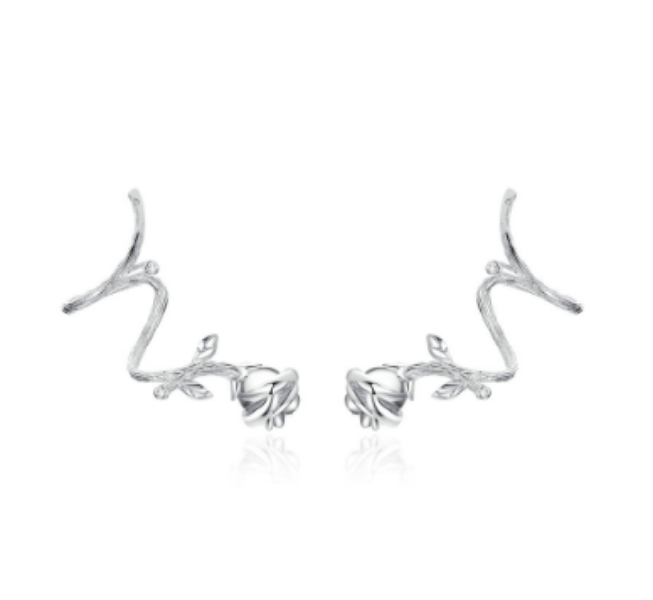Silver Rose Ear Clips. If you love to play with style and fashion, this unique set of earrings will be just right for you. The rose studs gently twist around the ear to create a beautiful vine-like effect and the oxidized detailing gives the set a look of vintage glamour.