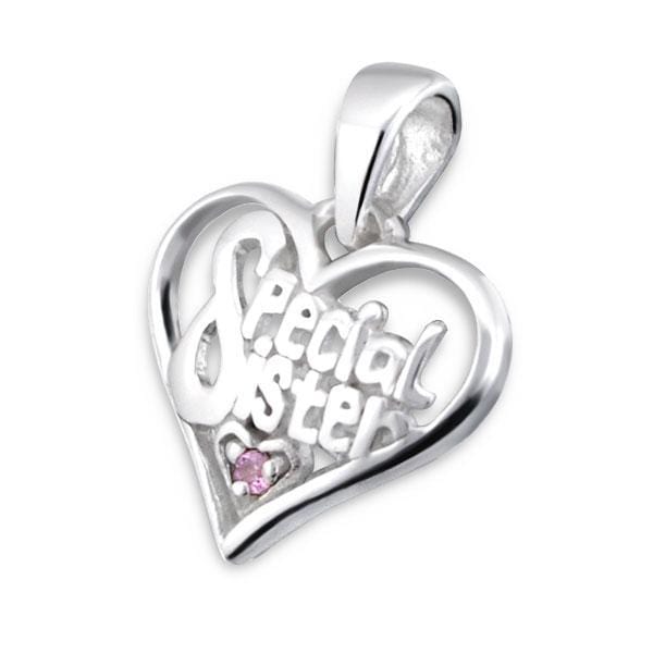 Show your sister how much she means to you with this adorable ‘Special Sister' heart pendant charm. The pendant is made from sterling silver and is expertly carved. This pendant would look great with both evening and day wear.