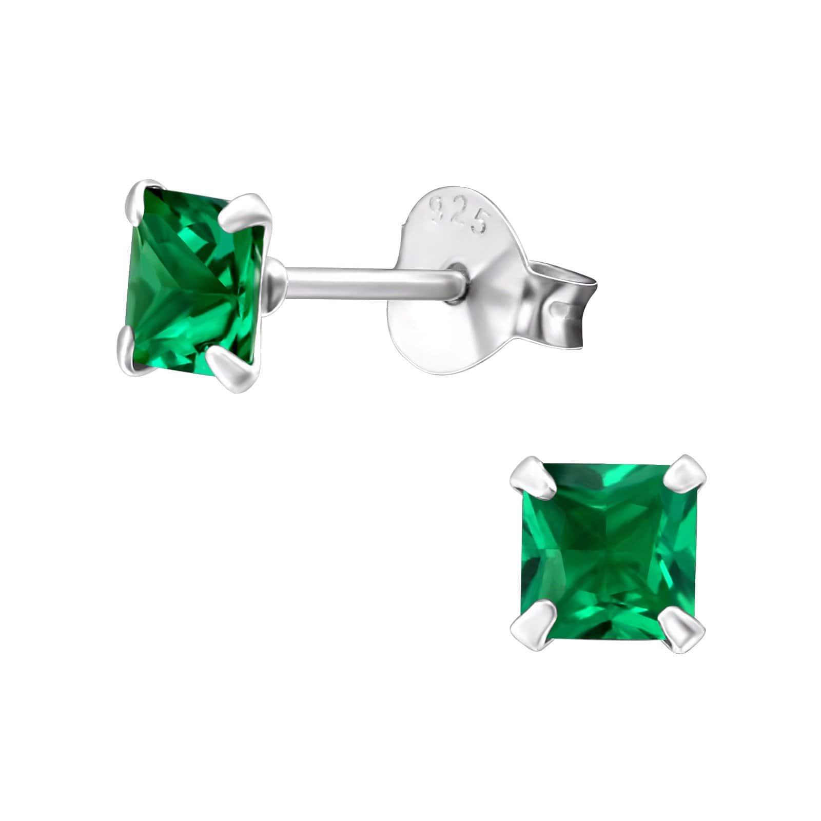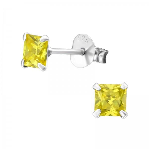 Silver Square Birthstone Stud Earrings