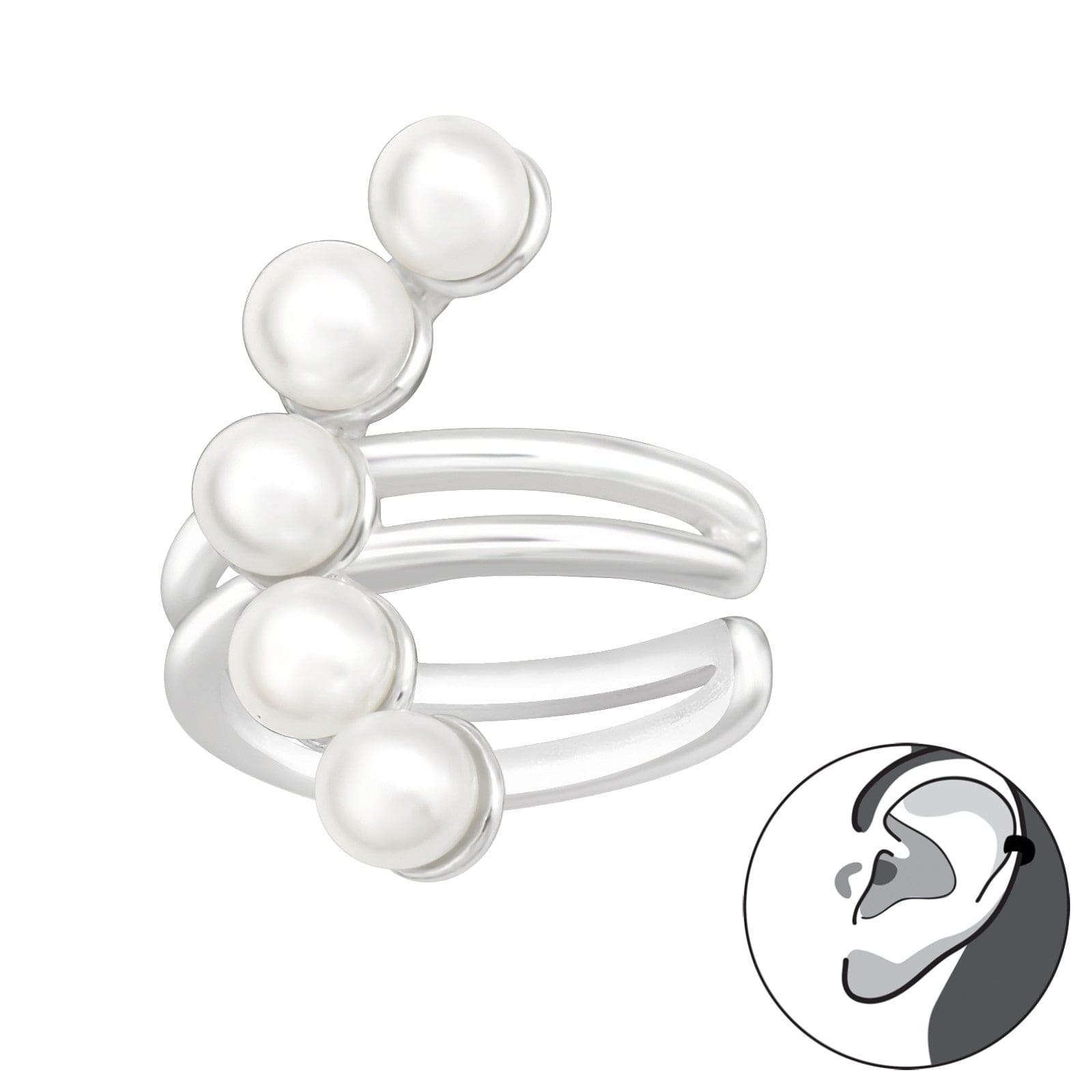 Silver White Pearl Ear Cuff Earrings