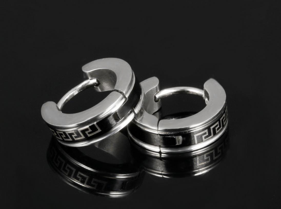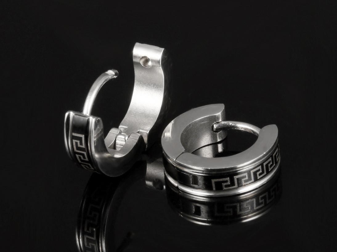 Stainless Steel Black Maze Hoop Earrings