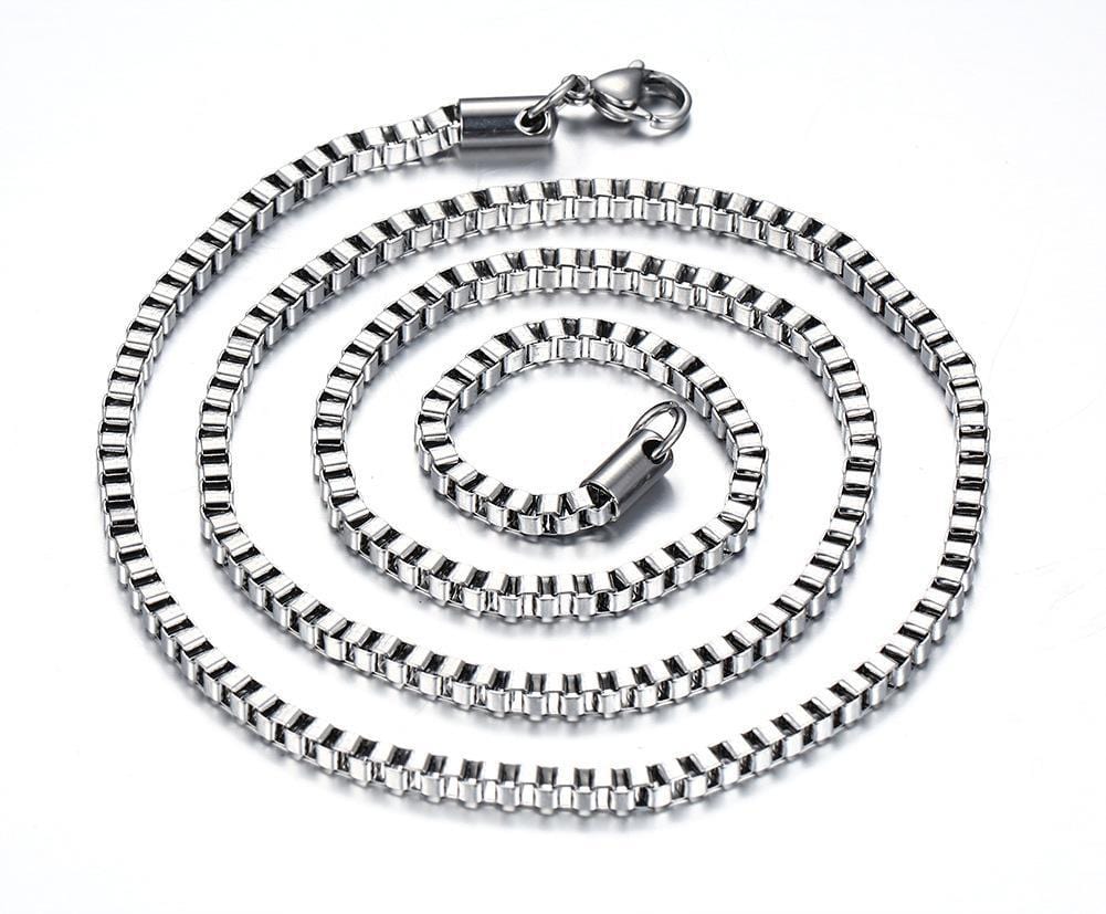 Stainless Steel Box Necklaces Comes with an elegantly designed and sturdy gift box that is ideal for storing and presenting jewellery.