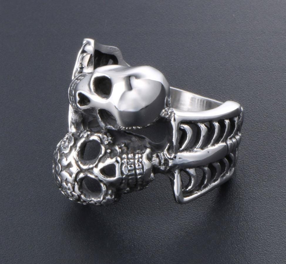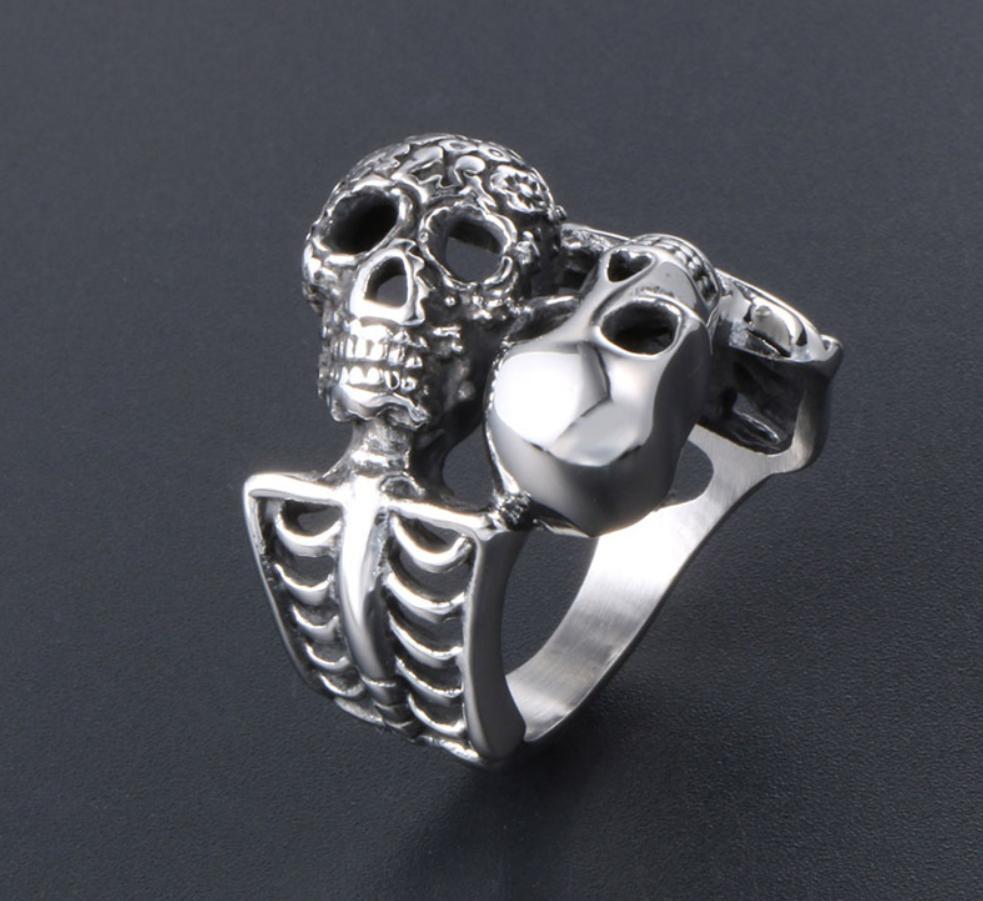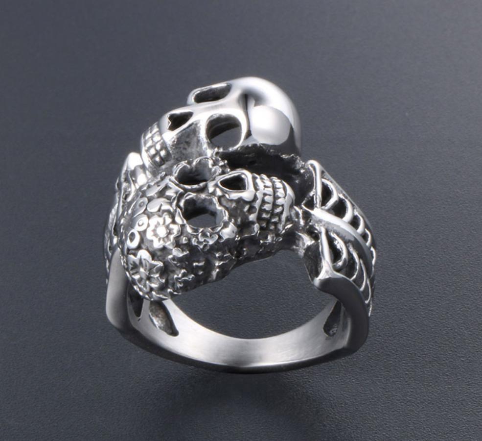 Stainless Steel Double Skull Cocktail Rng Comes with an elegantly designed and sturdy gift box that is ideal for storing and presenting jewellery.