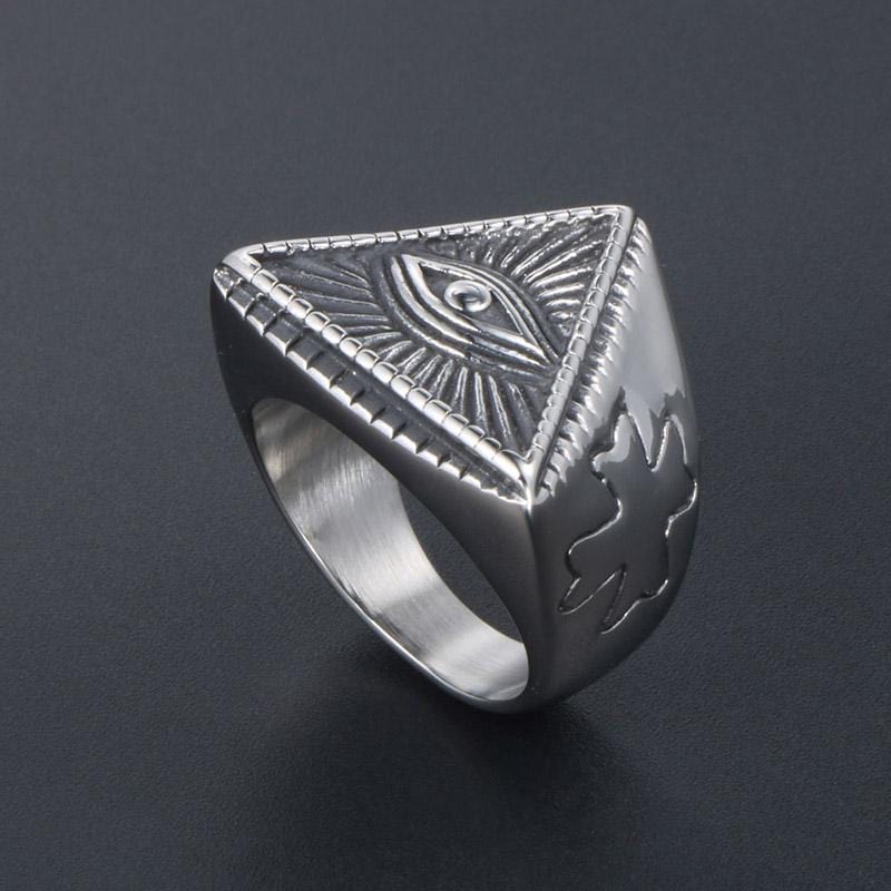 Stainless Steel Evil Eye Side Cross Mens Ring Comes with an elegantly designed and sturdy gift box that is ideal for storing and presenting jewellery.