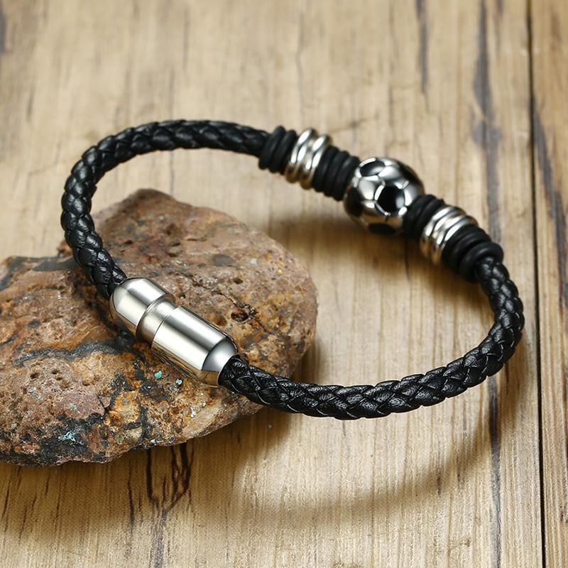 Stainless Steel Football Magnetic Leather Bracelet Comes with an elegantly designed and sturdy gift box that is ideal for storing and presenting jewellery.