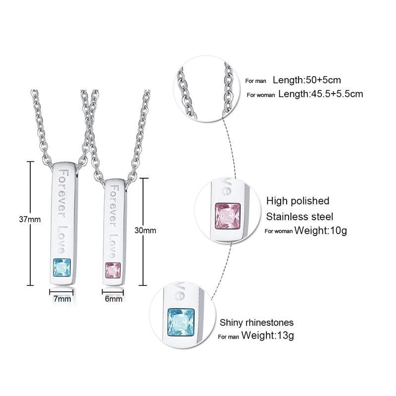 Features:Stainless Steel Couple Necklace Forever Love Comes with an elegantly designed and sturdy gift box that is ideal for storing and presenting jewellery.