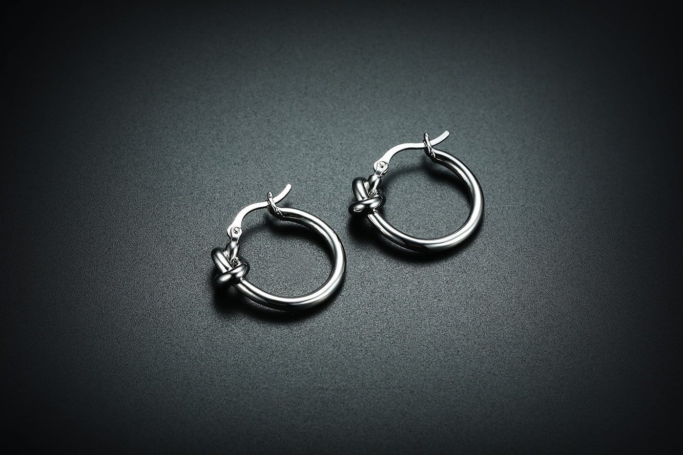 Stainless Steel Gold Hoop Tie Knot Earrings