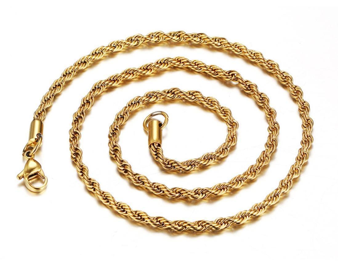Stainless Steel Gold Rop Chain Necklace Comes with an elegantly designed and sturdy gift box that is ideal for storing and presenting jewellery.