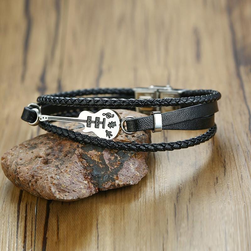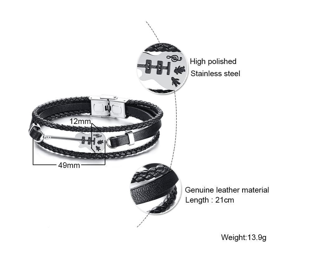 Stainless Steel Guitar Leather Bracelet for Men Comes with an elegantly designed and sturdy gift box that is ideal for storing and presenting jewellery.
