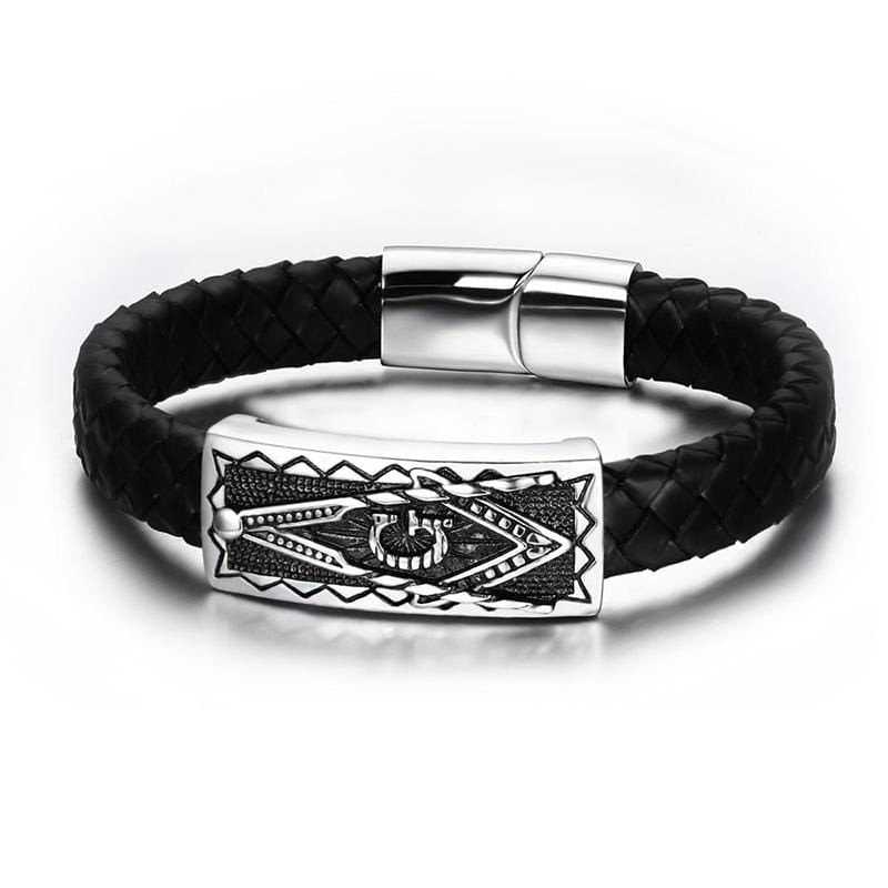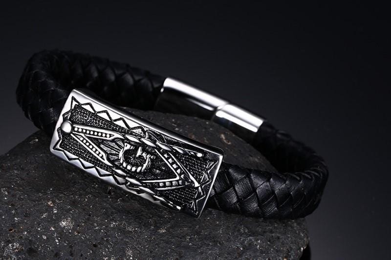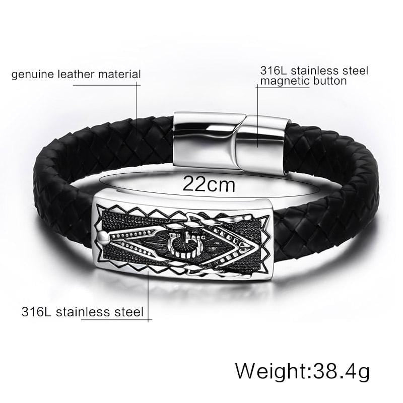 Stainless Steel Masonic Leather Bracelet